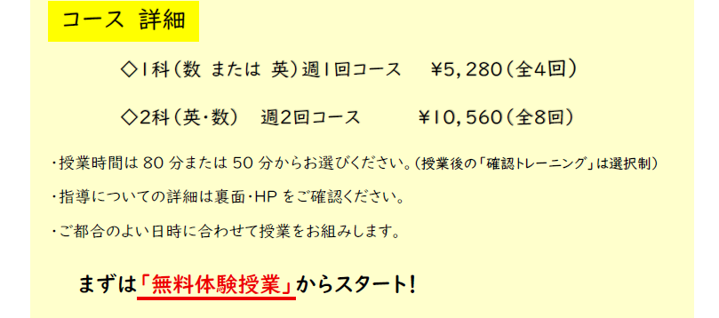 「無料体験」+「《1:2の授業80分+確認トレーニング》× 4回」