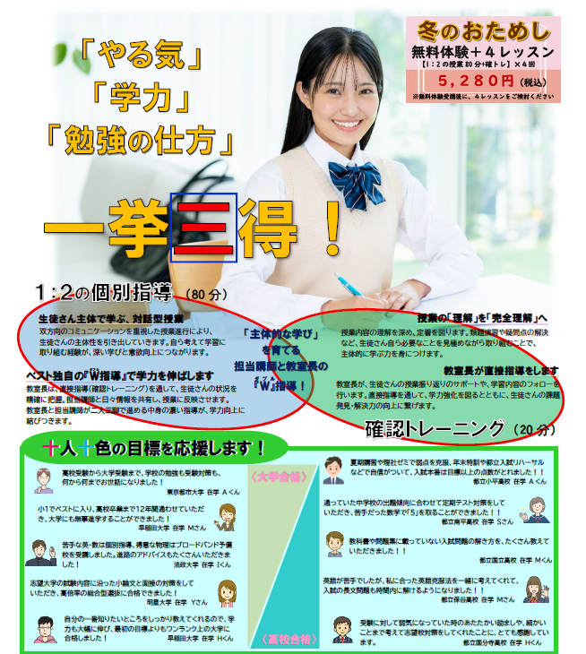 ベスト個別指導塾 ホーム > 2025 冬のおためしレッスン