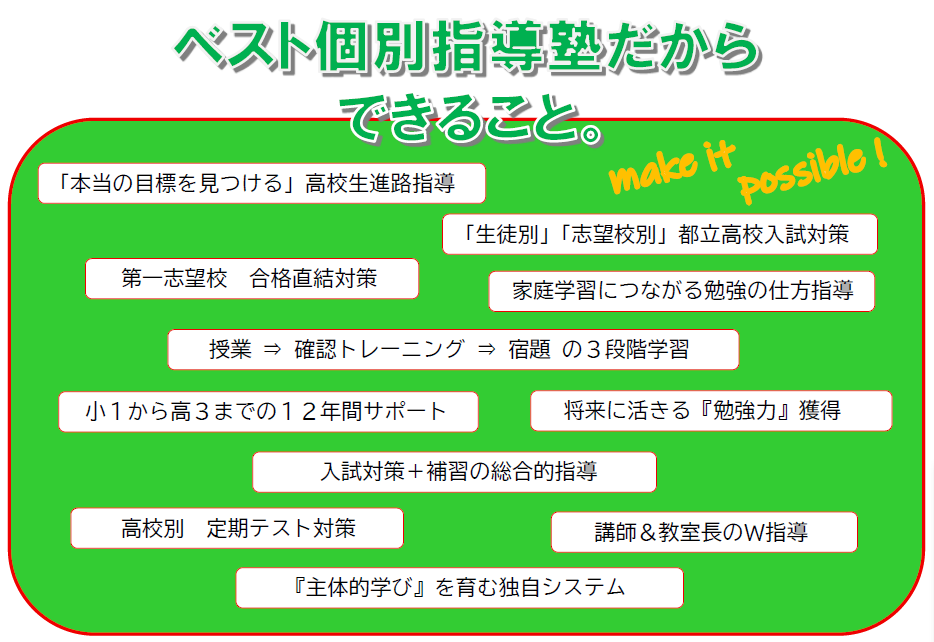 東京多摩の地域密着型の学習塾、ベスト個別指導塾